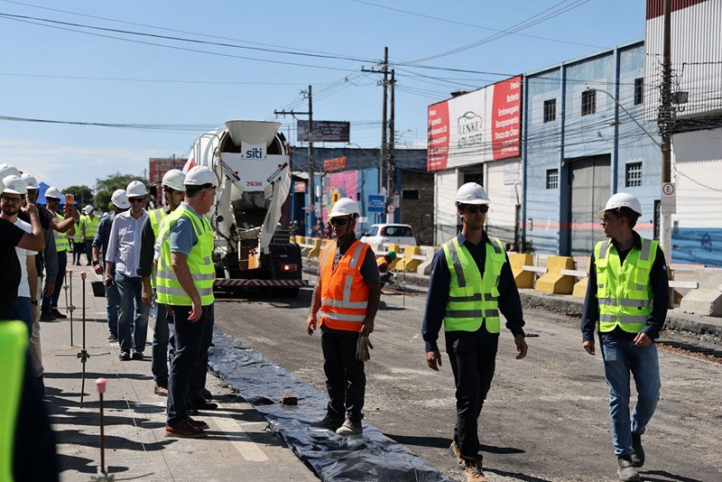 No corredor Expresso GV, na Avenida Carlos Lindenberg (entre Cariacica e Vila Velha), a visita técnica acompanhou o início da fase de concretagem.